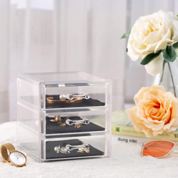 Organizzatore di gioielli e trucco in acrilico a 3 cassetti scatola di immagazzinaggio cosmetica trasparente di alta qualità